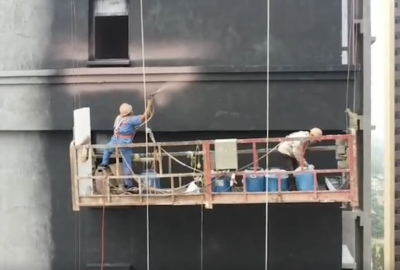 多功能噴涂機真石漆噴涂工地施工現場演示……